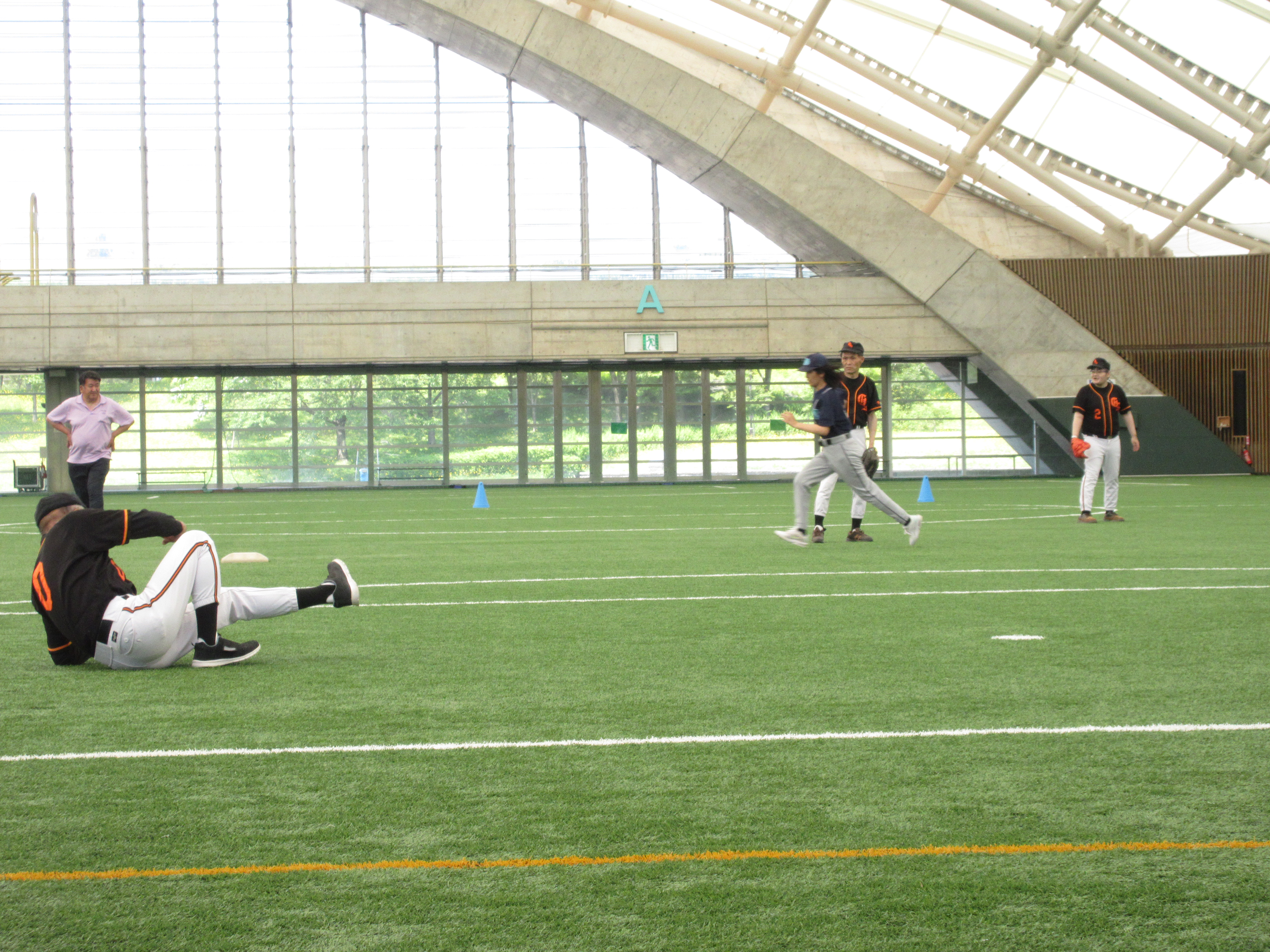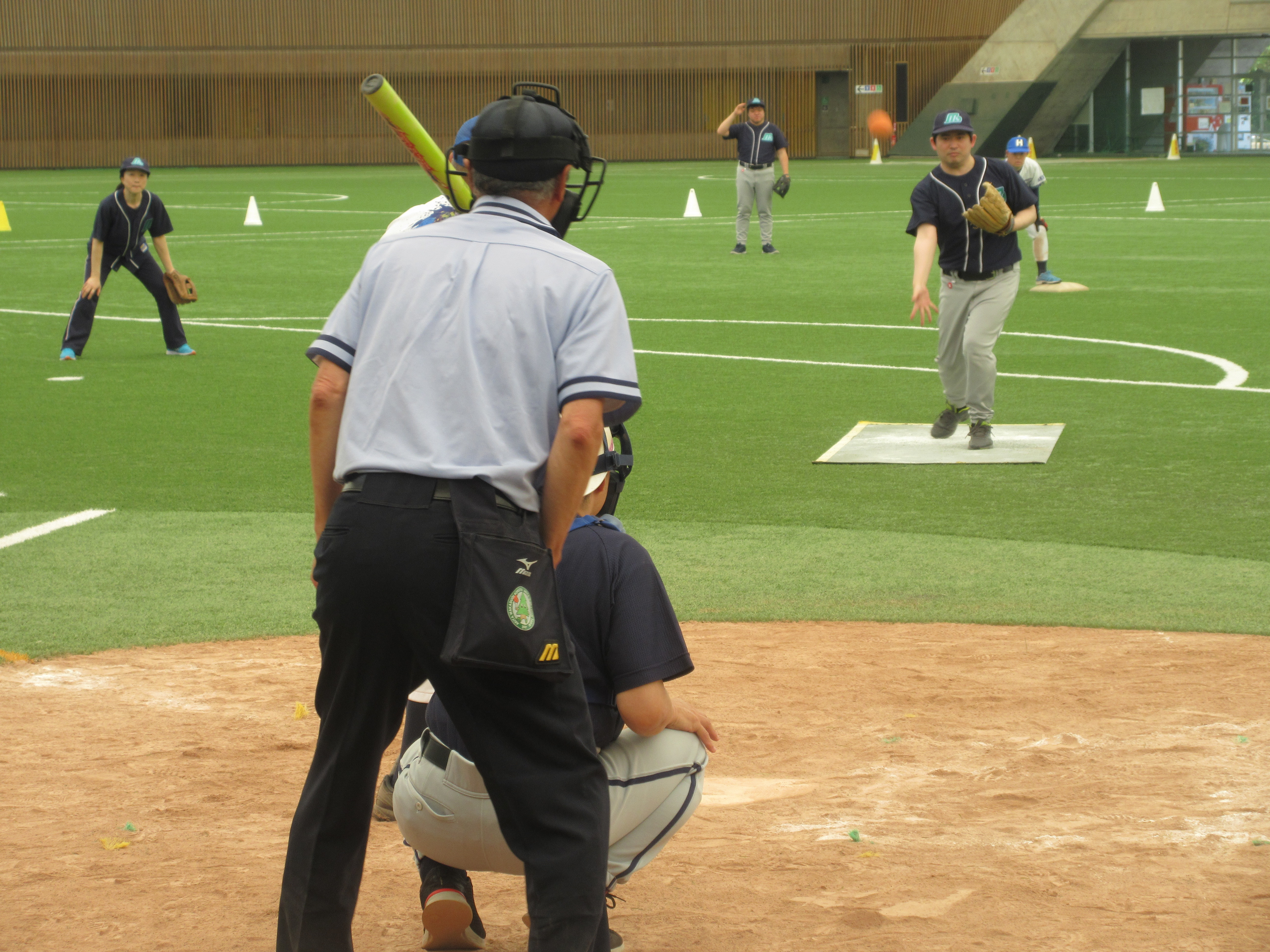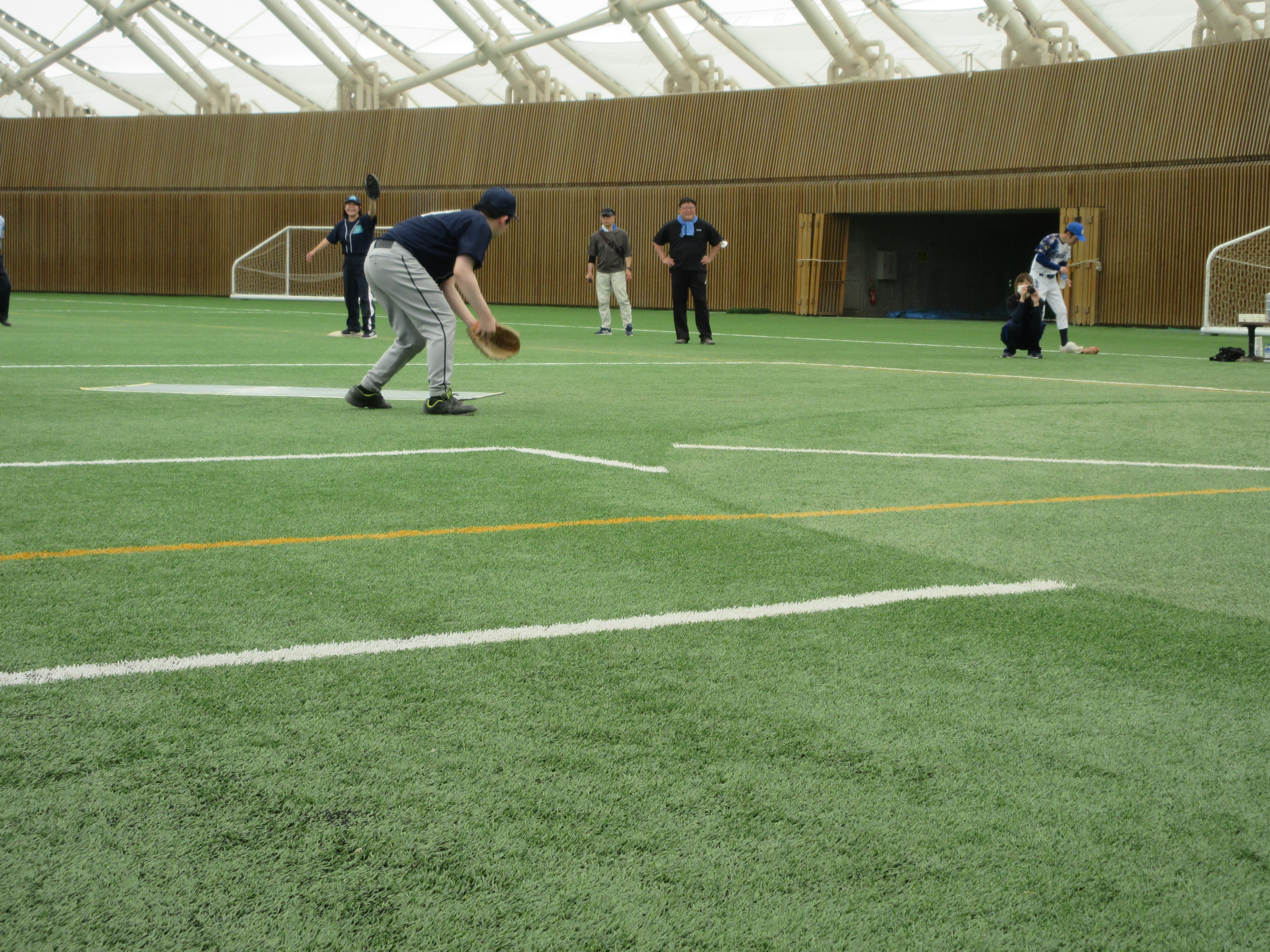 Ю ゴロをナイスキャッチ。奥では送球を呼んでます。ナイスなコミュニケーションです。